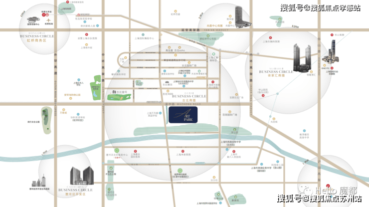 3公里左右可以快速到达爱琴海购物中心、万象城购物中心、徐家汇商圈的恒隆、ITC等。