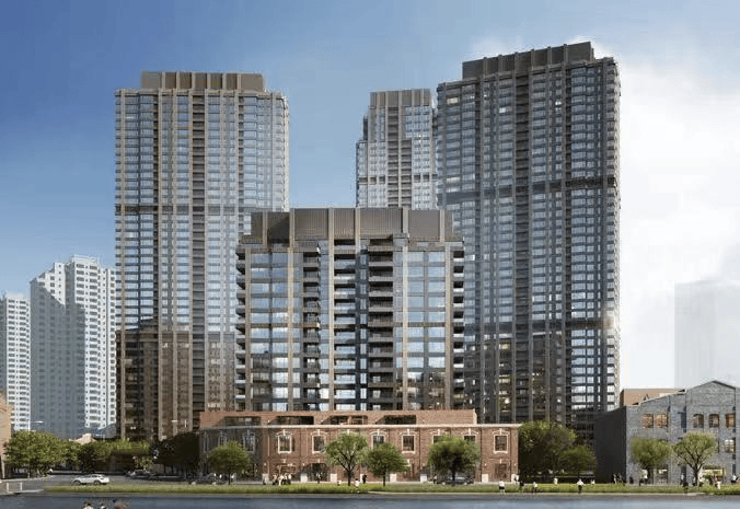 海玥黄浦源项目从土地价值着手设计,综合考虑北侧苏州河核心段的稀缺景观,因地制宜进行“一星四叶”的建筑布局。