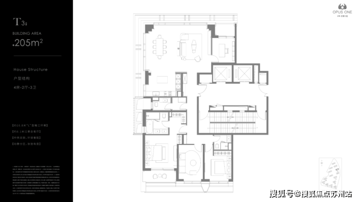 OPUSONE500的双豪华套房尺度惊人,粗略预计面积均接近了55㎡