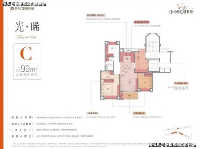 户型设计上,虹桥和颂售楼处电话☎:400-882-8814(预约热线)✔✔✔保利虹桥和颂,品质改善为出发点,设计“私属、至臻、尊崇”三大产品理念,臻奢建面约75㎡户型,三开间朝南,阳光与清风为伴,玄关+餐边柜+飘窗,全能收纳,卫浴三分离,干湿有别,奢阔餐客厅一体,空间明朗,动线流畅。