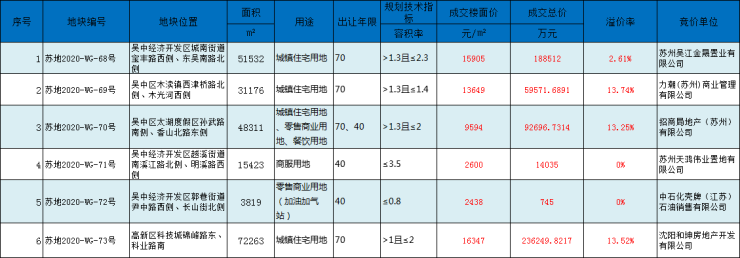 中建、正荣、招商局、中粮4家房企成功竟得。苏地2020-WG-68号地块。苏地2020-WG-69号地块。苏地2020-WG-70号地块。苏地2020-WG-73号地块。具体情况如下。