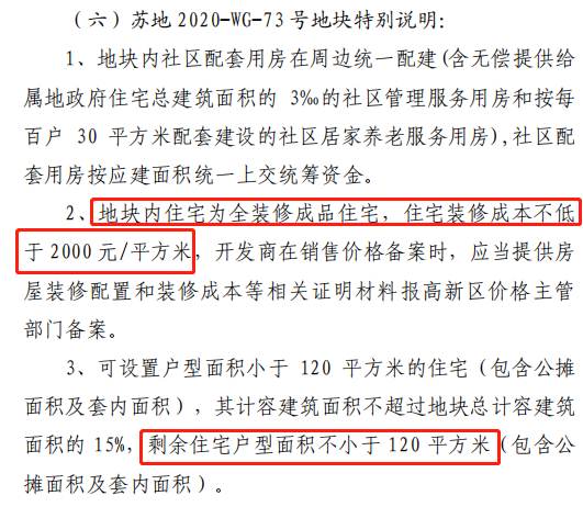地块要求全装修住宅,装修成本不低于2000元/平;