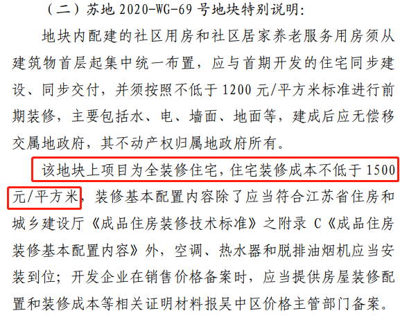 地块也设置也特别说明项目要求为全装修住宅住宅装修成本不低于1500元/平