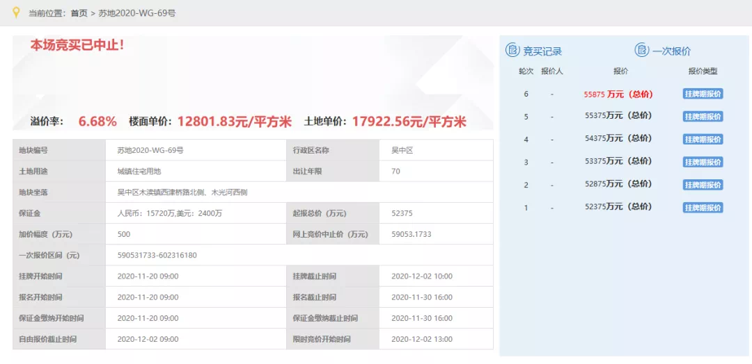 地块目前已经有6轮报价,楼面价12801.83元/平;