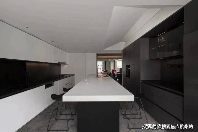 餐厨区域:这个户型选择了中西厨+独立餐厅区的做法,西厨区面积更大,和独立餐厅在一起.喜欢西式习惯的老板可能会很受用,餐厅面积也比较充分,体验会比较好.