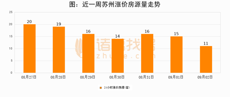 根据诸葛找房数据显示,苏州24小时涨价房源量为11套,较09月01日减少4套,环比下降26.7%。与此同时,涨价房源占比小幅回落,对于购房者来说是一个入市窗口期,购房者可抓住时机入市。