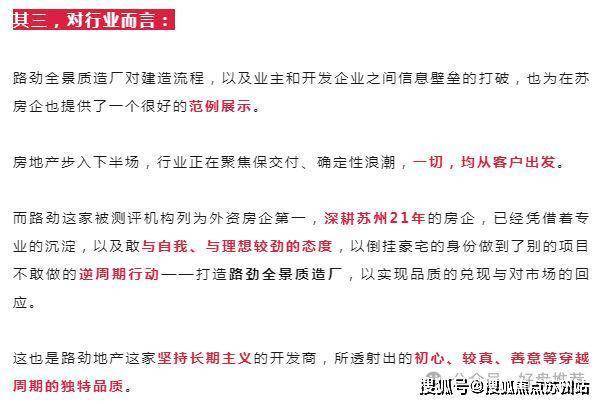 苏州路劲君和居售楼处电话☎:400-8828-814(售楼处预约看房热线)其实关于路劲在这个节点打造全景质造厂,换作一般开发商,或许有点“无法理解”。因为作为苏州顶流的千万级到挂豪宅,君和居项目原本完全可以一直“躺平”,根本不必这么费力做这种“逆周期”的行动。