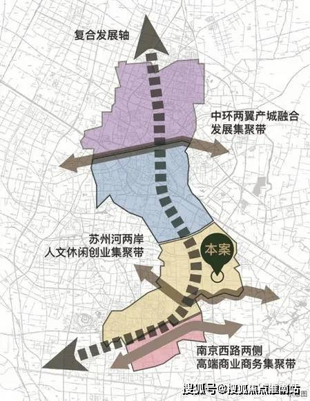 在上海2035总体规划中,静安区提出“一轴三带”的规划空间结构,其中大苏河湾位于一轴一带的交汇处,和南京西路并列成为静安区的规划核心,共同构成顶级的金融商务集聚核,将成为静安区新的发展引擎。