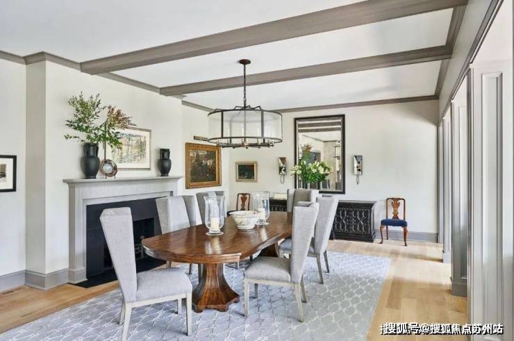 百分之百的优雅对材质的要求异常严格,而胡桃木的材质恰好强调了空间的高级感,利用老式LaVerne茶几、KellyWearstler的椅子和FortStreetStudio的地毯让人仿佛穿越回五十年代的复古时空。