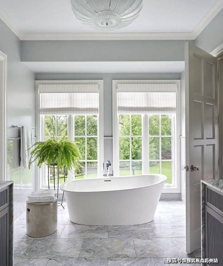 就连浴室也确保了极好的视野,大玻璃窗的设计让整个空间的光线感十足。