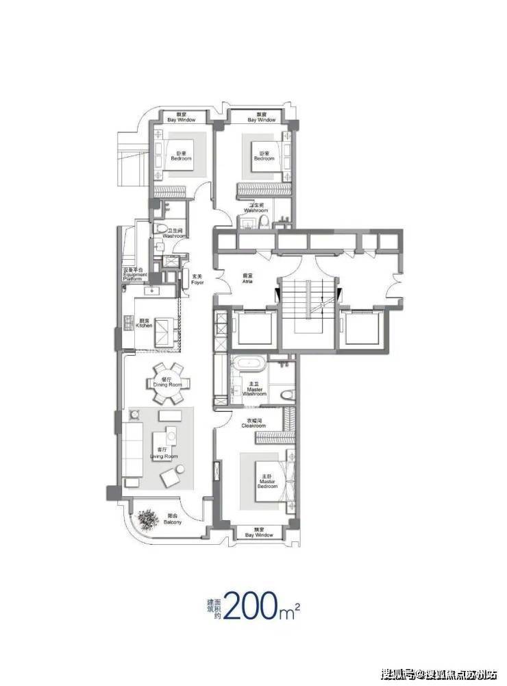建筑面积约200㎡户型(户型过程稿,以实际交付为准):