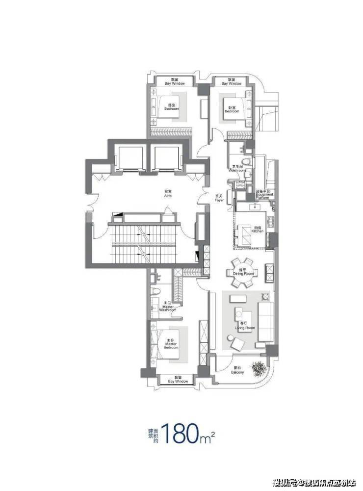 建筑面积约180㎡3房(户型过程稿,以实际交付为准):