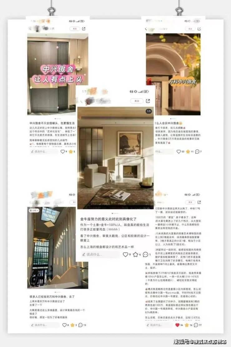 2、小红书等社交平台上,赞美楼盘神颜的帖子。