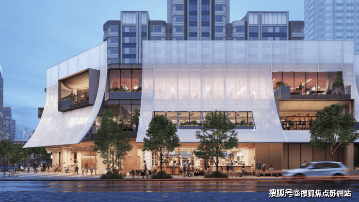 为了更好的把幻彩铝板梦幻的光泽放大,设计师通过内凹反弧造型,扩大了折射效果,形成极具记忆点的立面风格。