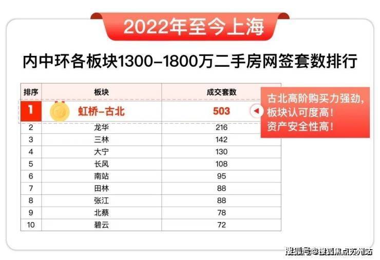 从二手房次新市场看,2022年至今,内中环1300-1800万价格段成交更活跃的板块当属古北-虹桥,市场认可度与购买力双高。