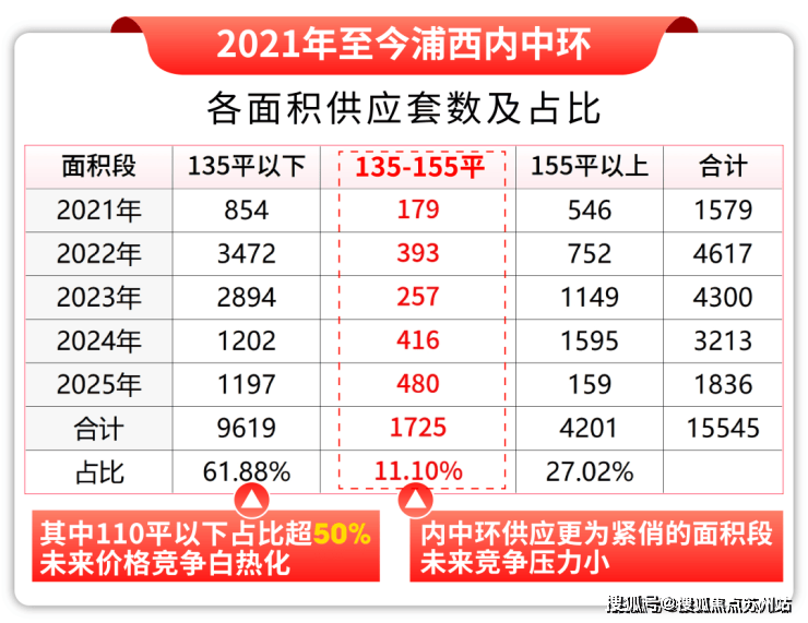 2021年至今,内中环约135-155㎡户型供应仅占比约11%。