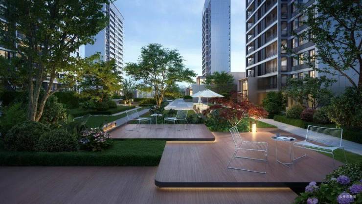 小区的园林设计对标国际豪宅,打造了“三轴九园”的景观体系。规划了社交剧场、艺术花园等七大主题空间,有雕塑、有水景,就像住在度假酒店里,为低密大平层的业主提供了奢华的休闲环境。
