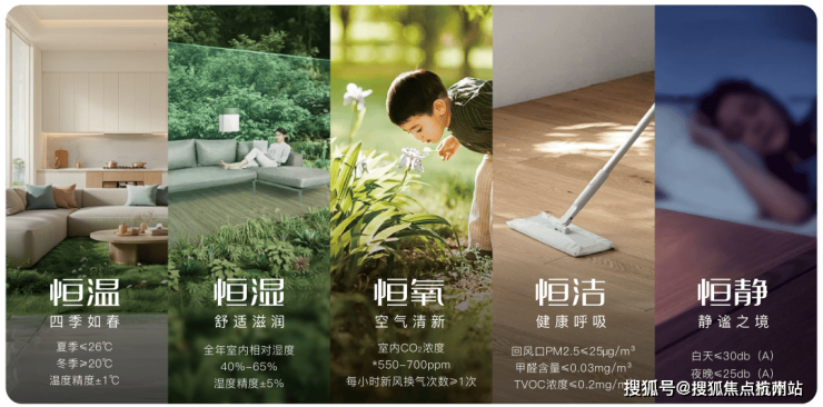 涵盖“恒温、恒湿、恒氧、恒洁、恒静”五大核心功能,采用领先的集成式辐射板技术,彻底颠覆传统科技住宅的实现路径。
