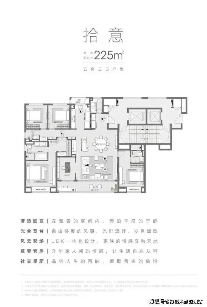 拾意:建面约225㎡,五房三卫户型