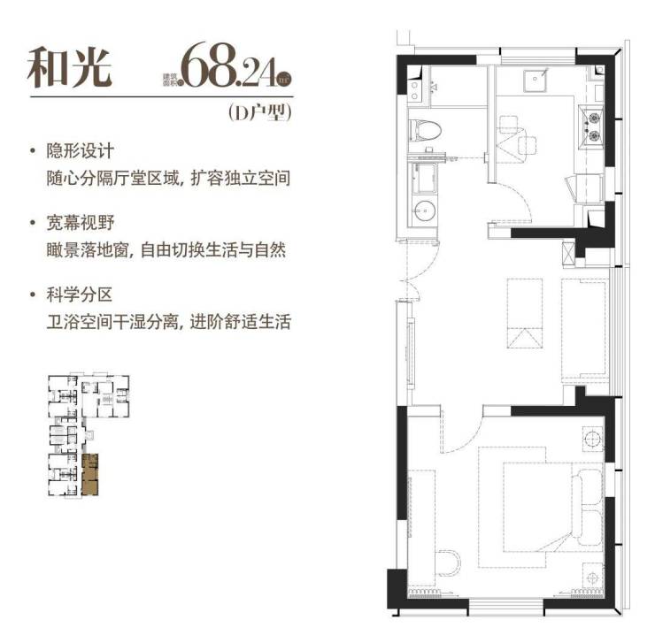 建面约68.24㎡一室一厅一卫