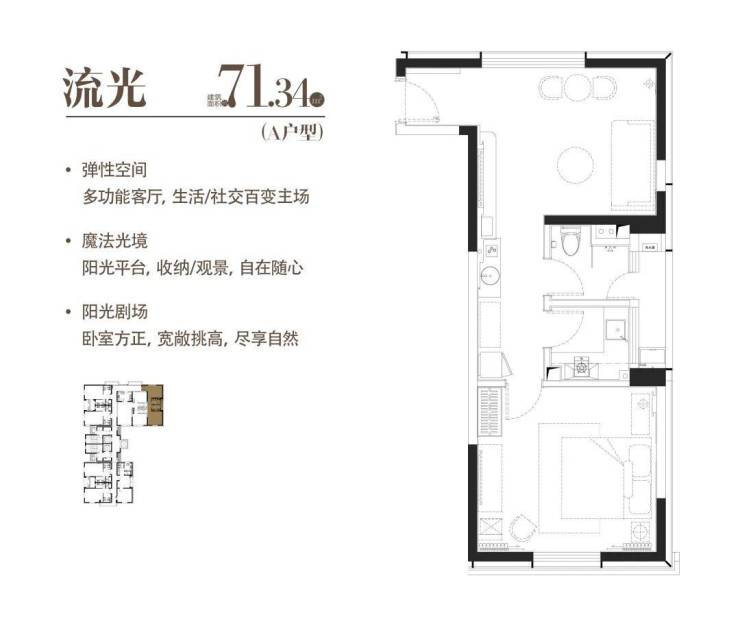 建面约71.34㎡一室两厅一卫