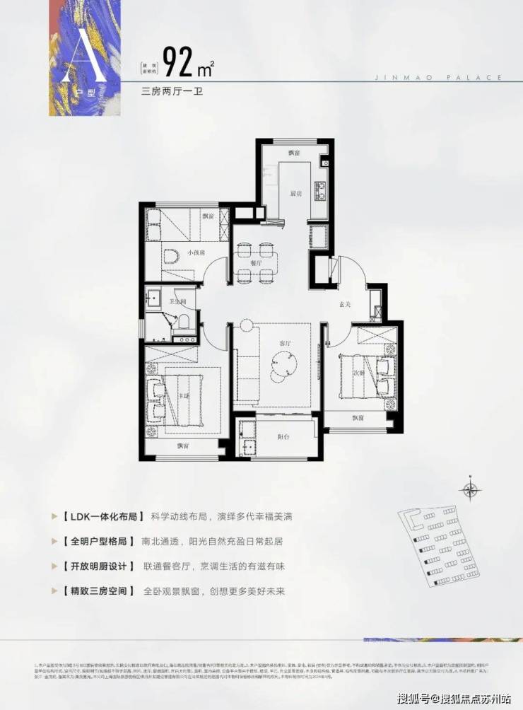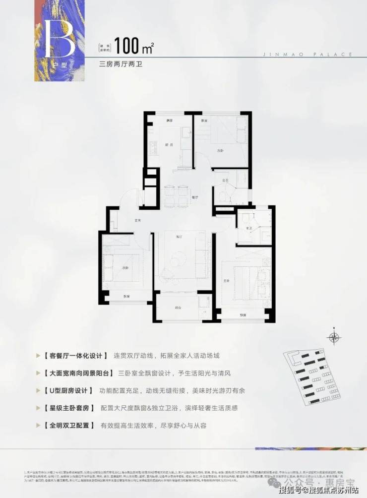 建面约100㎡3房2厅2卫,这是一个功能性和尺度感完美结合的明星户型。