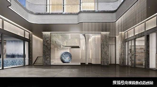 项目利用下沉式景观庭院,结合艺术花园、摩登水景等,打造了一座高端的下沉式会所,规划设有泳池、健身房、行政酒廊等场景。