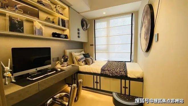 次卧室整体衣柜采用内嵌式处理,桌椅为卡通造型,激发孩子的兴趣和活泼天性。
