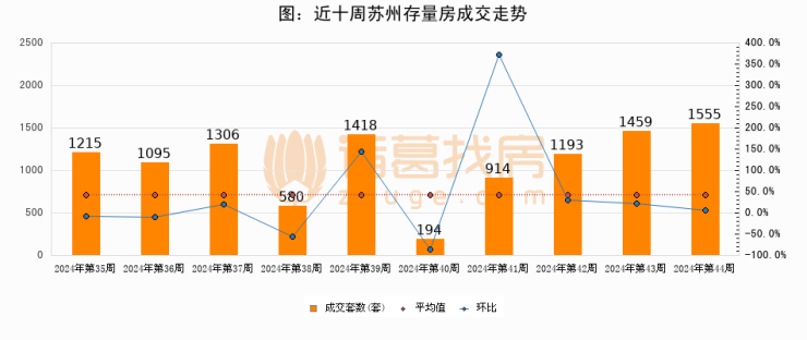 【苏州成交周报】第44周新房成交1154套,二手房1555套,涨价房源345套