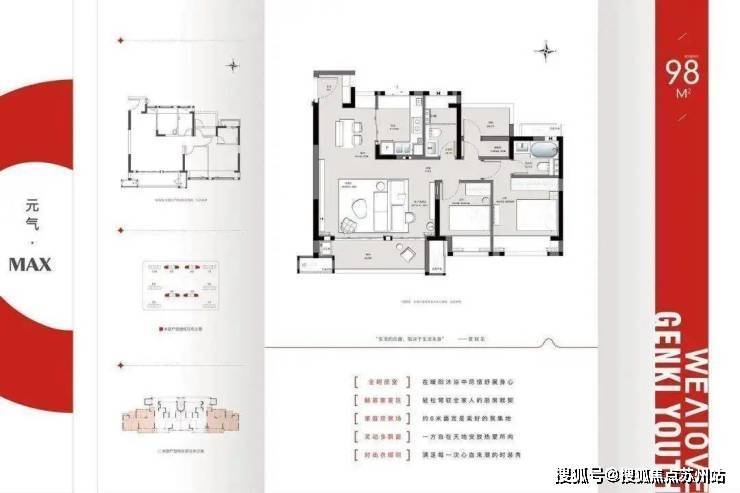 建面约98㎡2+1双卫户型,配置横向宽厅,多用可拓展空间,可满足二孩家庭和三代聚居的所需空间,细节考虑周到,生活从容有序。