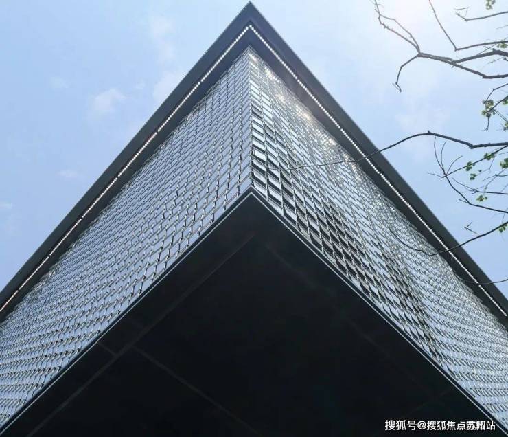 示范区主立面以银白不锈钢风动片为主,辅以珍珠白色铝板和浅灰色玻璃.徐风吹过,不锈钢片波动泛起涟漪,仿佛江南灵动的水系,勾勒出建筑独特的气质.