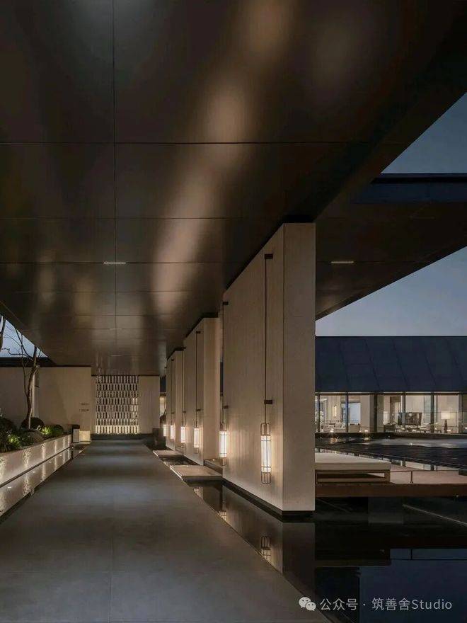镜面水景倒映乌桕的树影,古铜色金属屏风如同漏窗演绎自然的光影艺术,酒店的静谧感碰撞逛苏园般的仪式感,宛如置身宋画之中.