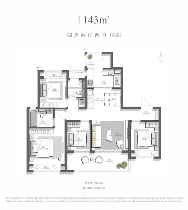 户型面积:约136/143m²(高层)、约165㎡/195㎡ (洋房)