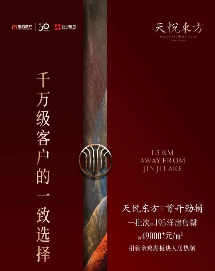 象屿天悦东方首开劲销,一批次建面约195㎡洋房售罄,单价约49000元/㎡,引领金鸡湖板块人居热潮,也再次印证了这个规律。