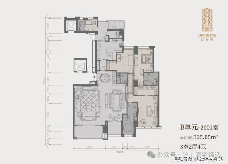3-15层为低区,16-35层为高区,建筑面积在305-360㎡的3房和4房,是上海少有