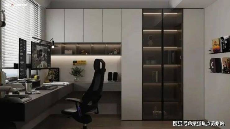 北卧室做电竞书房,以艺术玩味空间 善用色彩与结构创造现代意境简约利落 满足书桌、书架等功能需求~ 奶油白和高级灰的搭配 清爽自然,营造高雅深邃的氛围 也彰显低调而不失质感的生活品味 开阔的长桌满足阅读需求 。
