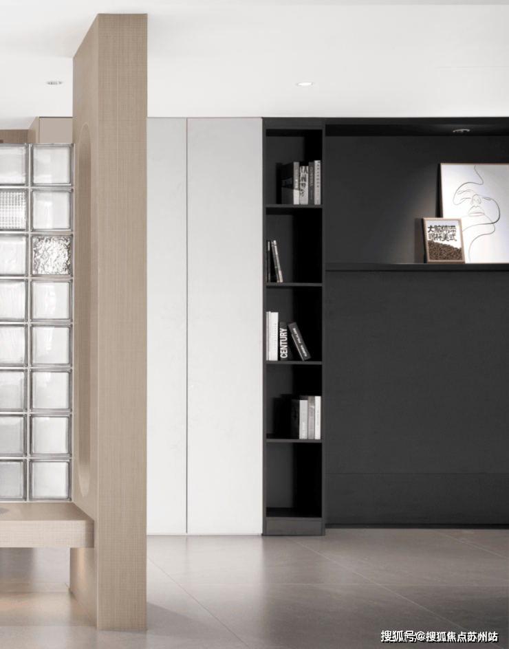 玻璃砖与镜面的漫反射运用,整体灰暗的空间又显得氛围感十足,有柔有刚,动静相宜,不与大同。