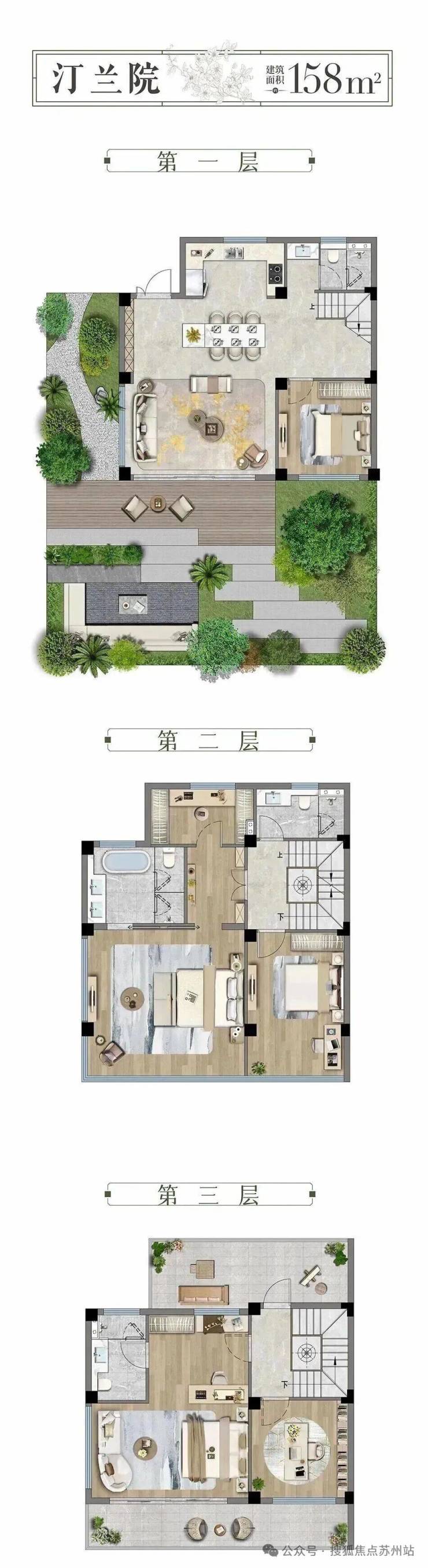 江南匠艺:项目承袭了2500年的“香山帮”非遗匠艺,把苏州五大名园的精华都融了进来。从大门到庭院,移步换景,就像住在园林里。