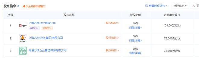 小编查询了现在北万的股权结构:万科(上海万科企业有限公司40%+南通万语企业管理咨询有限公司30%)占股70%!
