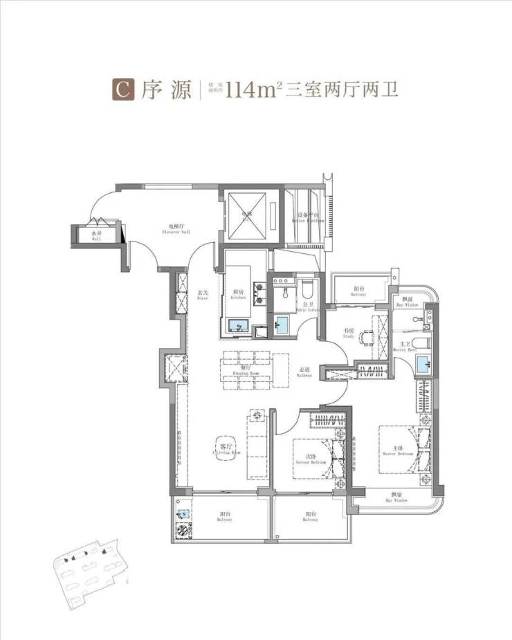 此外还有约112㎡3房、115㎡3房、143㎡4房的面积段户型,供不同需求的业主选择!