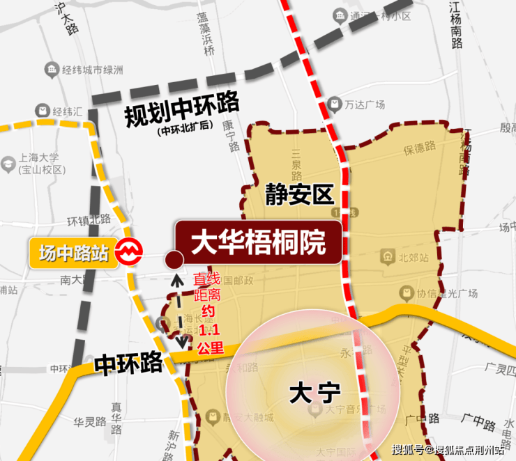 大华·梧桐院直线距离中环仅约1.1公里!