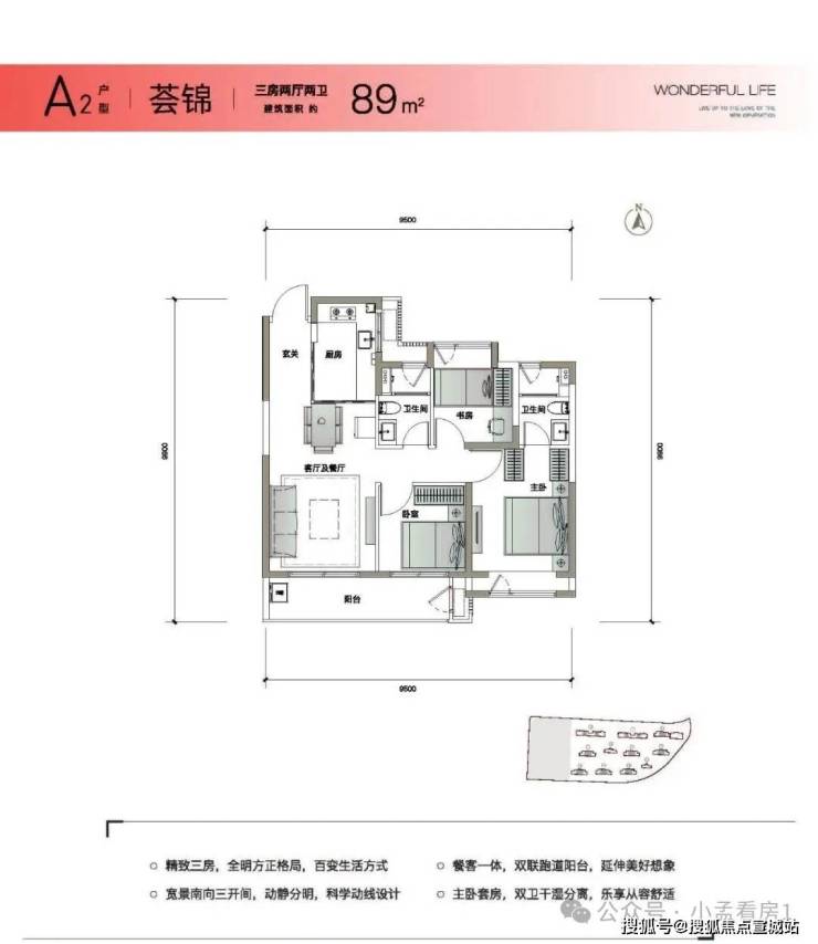 户型:约89㎡三房双卫,约6米双联阳台,尺度拉爆同级产品