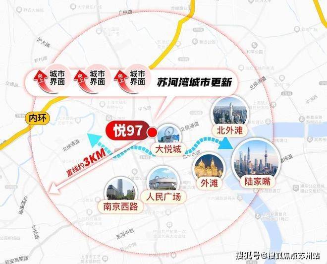 如果不拘泥于步行,视角放大到3公里半径,范围内江涵盖陆家嘴、人民广场、静安寺、南京西路、南京东路、外滩、新天地等城市CBD,上海几乎所有的高能级城市资源都在悦97业主的生活场域之内,这一点也是徐汇滨江难以比拟的!