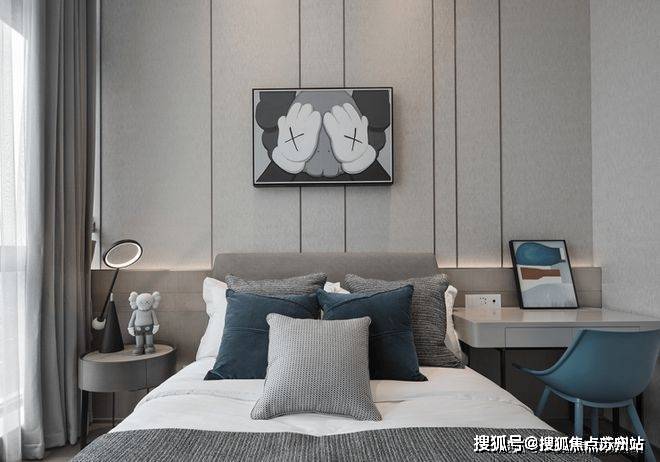 儿童房与主卧一墙之隔,蓝灰色调含蓄温和,简洁的布局使人舒适自在。