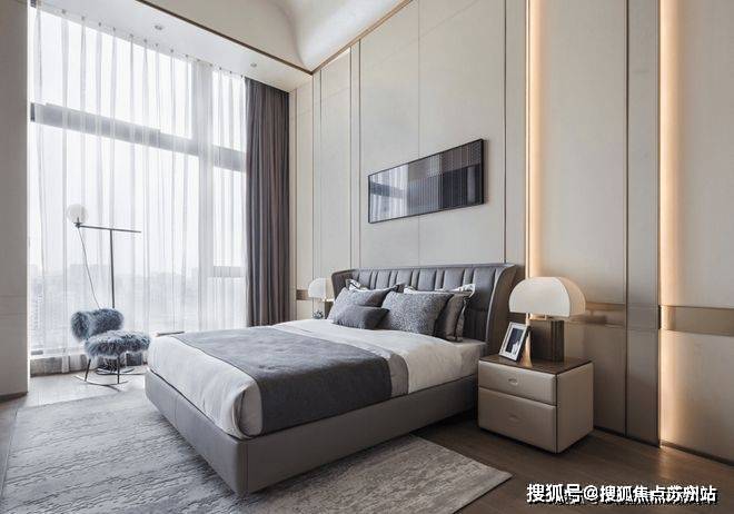 墙体以结构立面斜角造型向中间递进,增强了主卧的视觉。