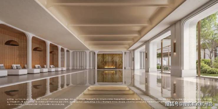 项目社区中央超大下沉式景观会所,恒温泳池采用落地玻璃幕墙,畅游时能欣赏窗外园林景观,堪比顶级度假酒店,另外健身房、私宴厅、书吧一应俱全!