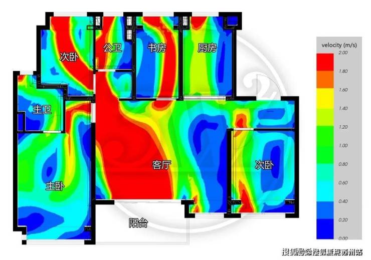 两户一单元的组合形式,使得本户型没有北外廊的干扰,无论边户还是中户,都是真正的南北通透。从通风的验算可以看出,本户型的自然通风条件同样优秀。