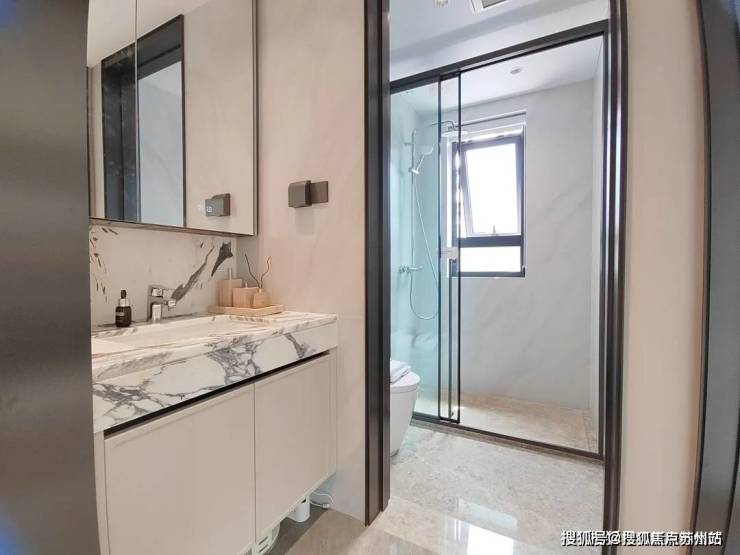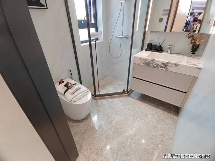 【招商时代潮派售楼处电话:400-8123-664【预约热线】☎✅】建面123㎡D户型的公共卫生间做到了干湿分离,淋浴马桶区域和洗手区域能够同时使用,这能够大大提升卫生间的使用效率。