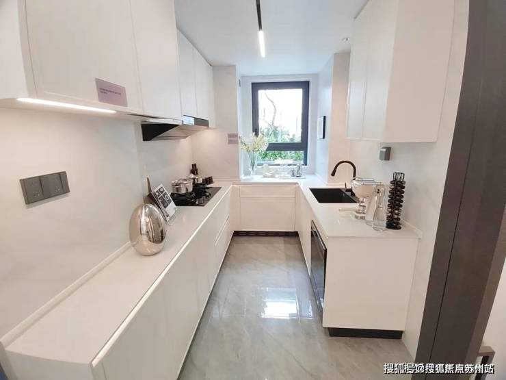 厨房面宽(轴线)约2.6M,在长边方向两面布置操作台,这是一种最符合人体工学的厨房方案,轻松满足家庭的同时使用。