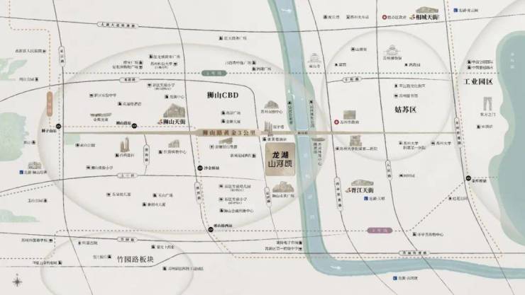 “一条狮山路,半部高新史”,这话一点不假。项目就坐落在这条黄金中轴上,交通没得说,三条地铁线环绕,离3号线金沙站就500米。周边全是好学校,苏州外国语、新区实验中小学等,狮山教育资源顶尖。